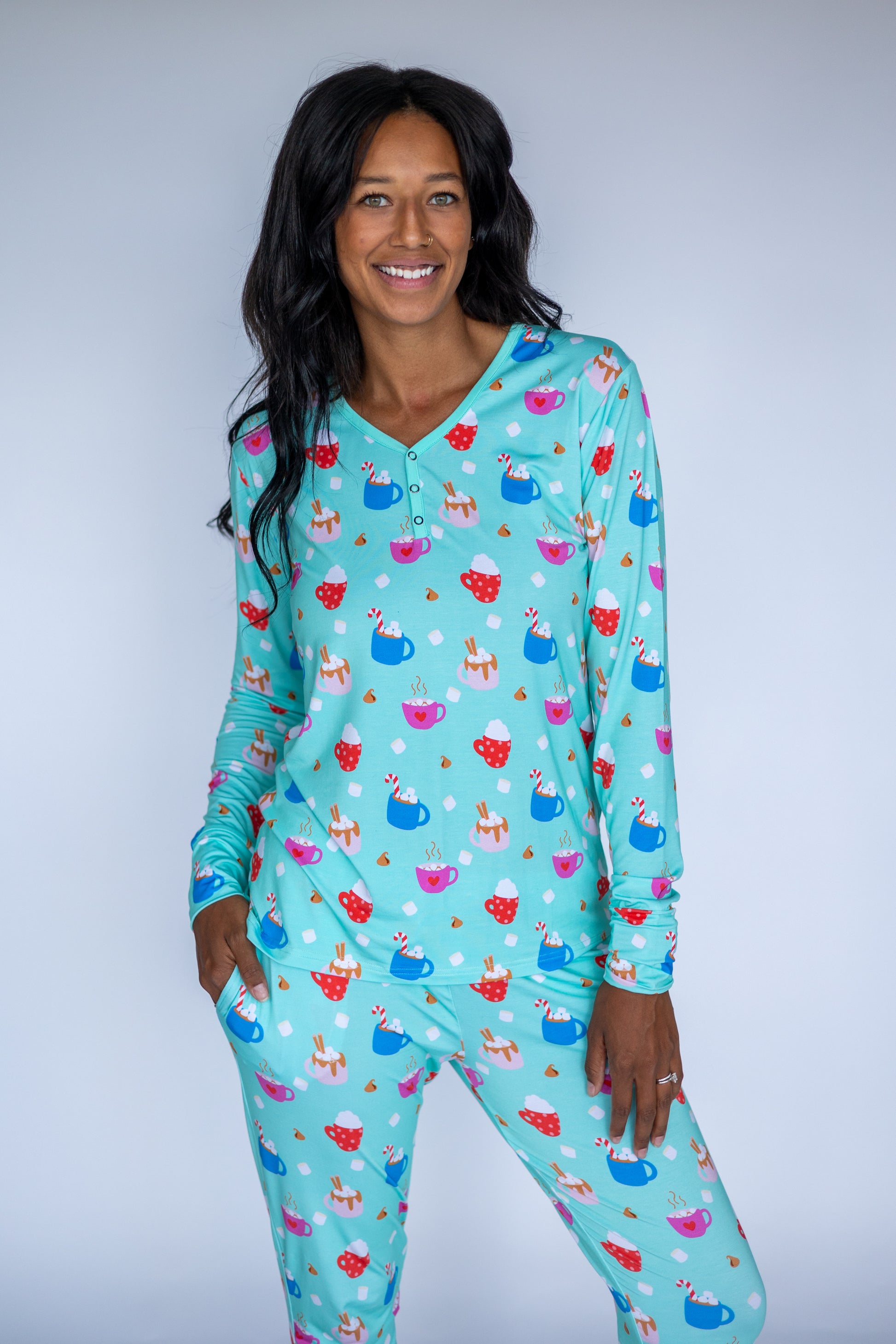 Made from buttery-soft bamboo that’s gentle on sensitive skin, this matching set keeps you cool in summer and cozy in winter.